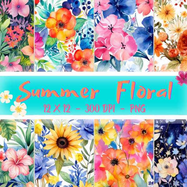 Summer Floral - Set of 8 - Digital Paper Design - PNG