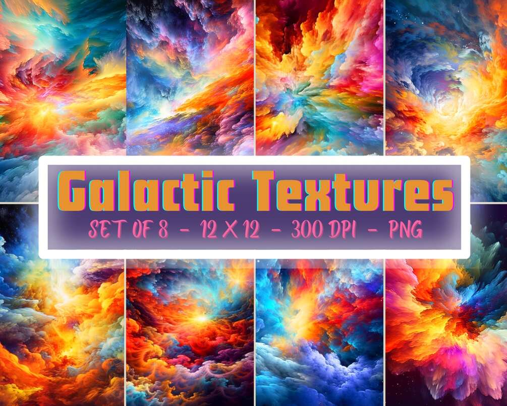 Set of 8 Galaxy Texture Designs - Digital Paper / Backgrounds / Print on demand - 12x12in - 300 DPI - Commercial Use - PNG File Type - Only 300 Downloads Available