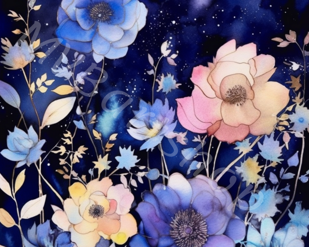 Set of 8 Summer Floral Flower Designs - Digital Paper / Backgrounds / Print on Demand - 12x12in - 300 DPI - Commercial Use - PNG File Type - Only 300 Downloads Available
