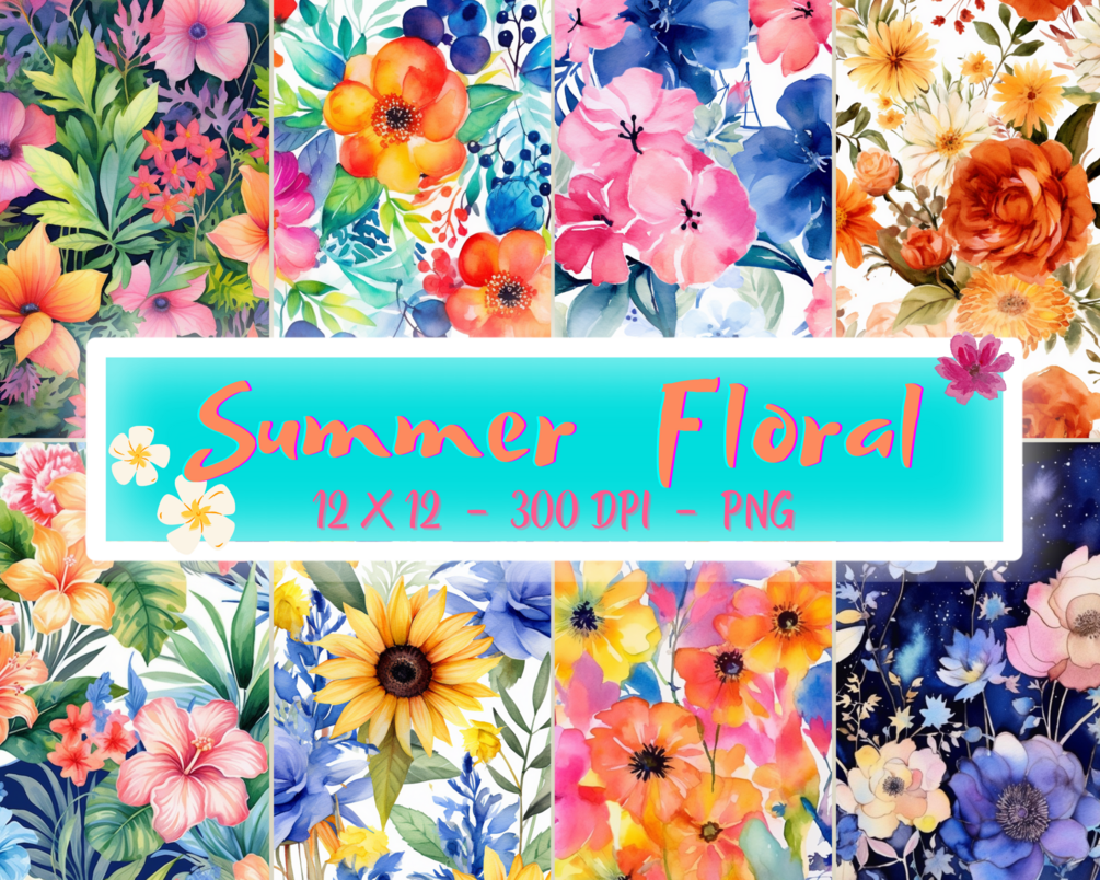Summer Floral - Set of 8 - Digital Paper Design - PNG